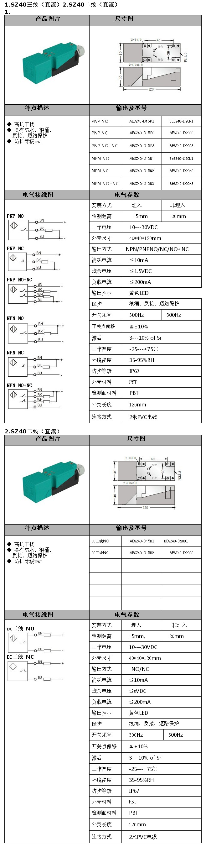 AESZ40-D15P1,BESZ40-D20P2,BESZ40-D20N2,AESZ40-D15N3,BESZ40-D20D2,SZ40直流三二線接近開(kāi)關(guān)