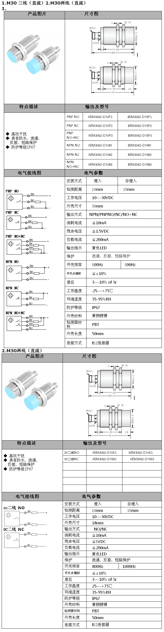 BEM30G2-D15P2,AEM30G2-D10P3,BEM30G2-D15N1,AEM30G2-D15D2,接插式M30直流三二線接近開(kāi)關(guān)
