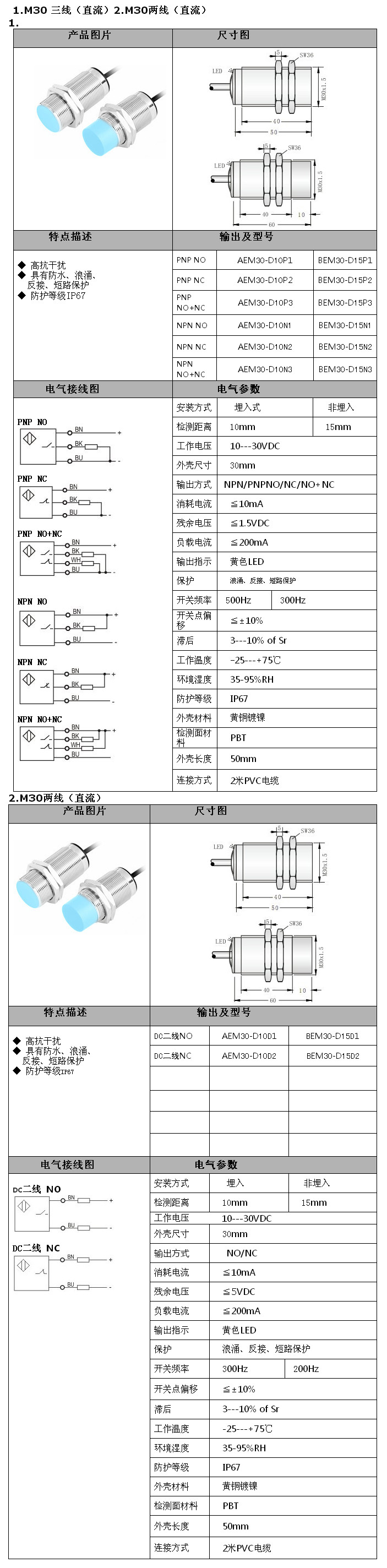 AEM30-D10P1,AEM30-D10N1,BEM30-D15N1,AEM30-D10N2,AEM30-D10D1,BEM30-D15D2,M30直流三二線接近開關(guān)