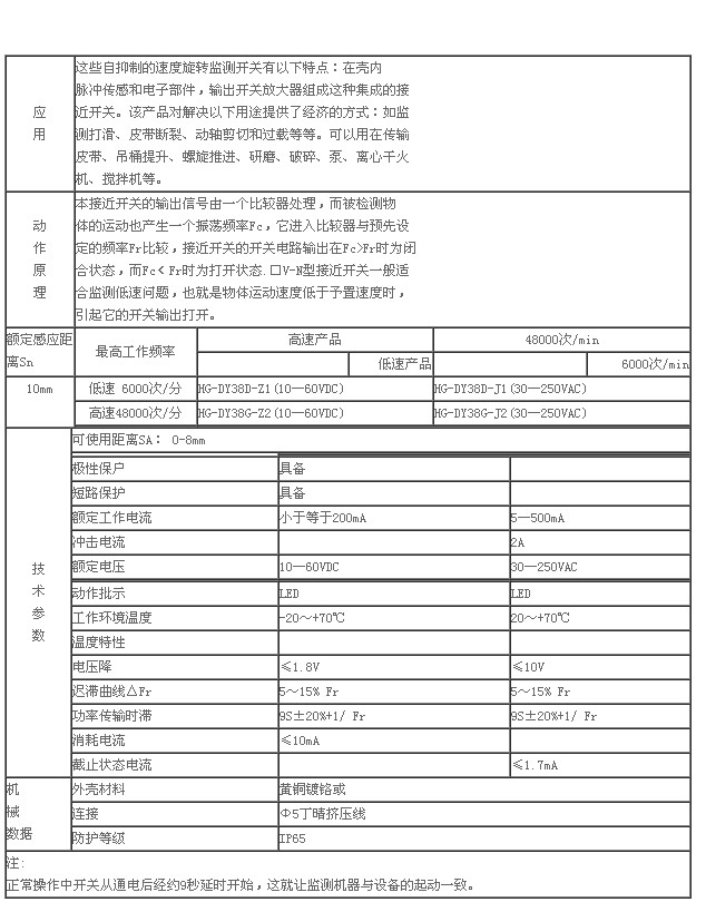 詳細信息 DY38,速度檢測開關(guān),HG-DY38D-Z1,HG-DY38D-J1,HG-DY38G-Z2,HG-DY38G-J2,