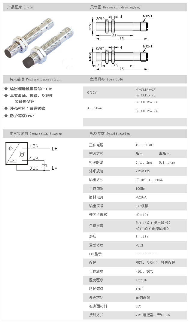 詳細(xì)信息 電感式線性傳感器 HG-XL12A-ZK,HG-XL12A-ZK,HG-XDL12A-ZK,HG-XDL12A-ZK,