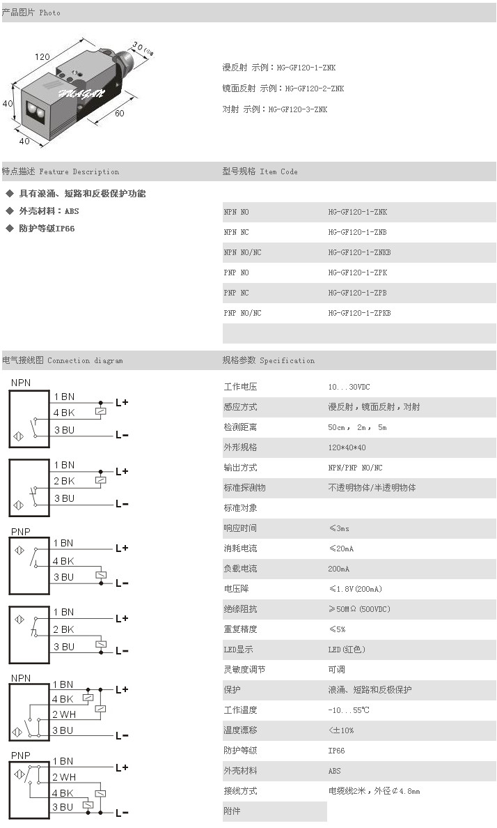 詳細(xì)信息 方型光電開關(guān)/傳感器 HG-GF120-1-ZNK,HG-GF120-1-ZNB,HG-GF120-1-ZNKB,HG-GF120-1-ZPK,HG-GF120-1-ZPB,HG-GF120-1-ZPKB,