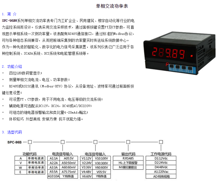 詳細信息 SPC-96BW,SPC-96BW-A1,SPC-96BW-A2,SPC-96BW-A3,單相交流功率表
