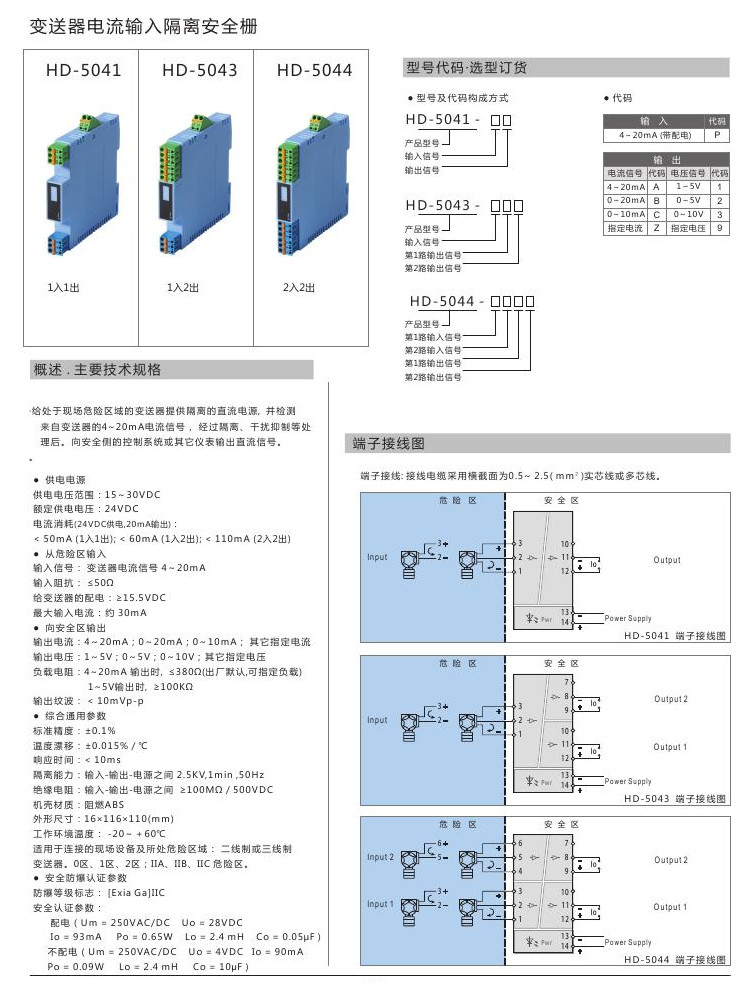 產(chǎn)品: 瀏覽次數(shù):1238HD-5041,HD-5043,HD-5044,變送器電流輸入隔離安全柵