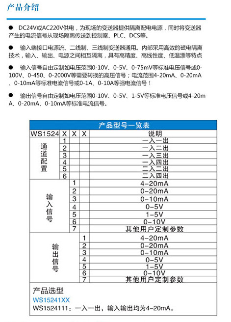 WS415241,WS415242,WS415243,WS415244,WS415245,WS415246,WS41524111,WS41524,直流信號(hào)隔離分配器