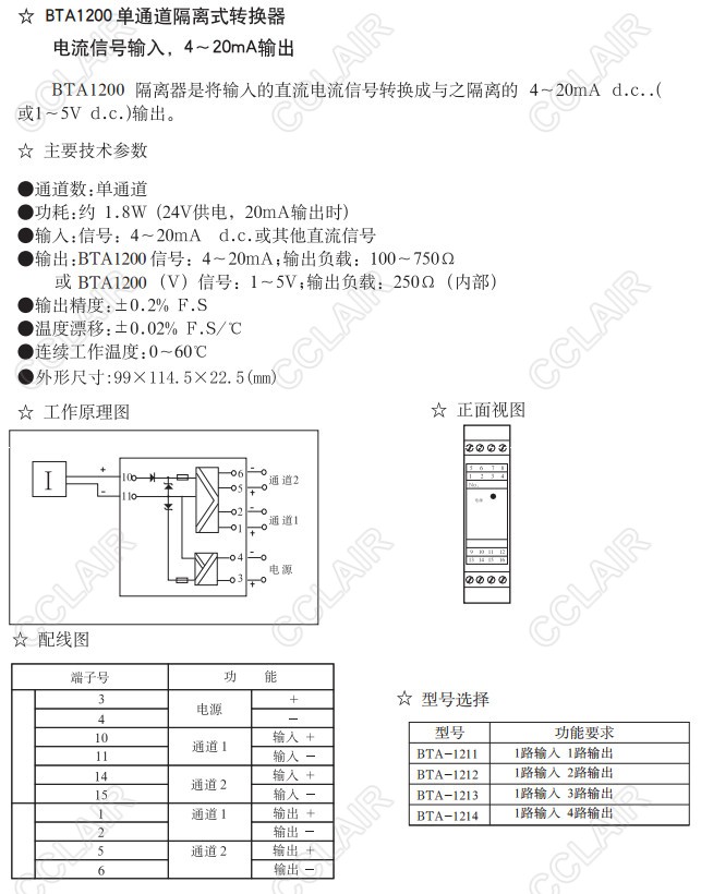 BTA1211,BTA1212,BTA1213,BTA1214,BTA1221,BTA1200,BT(KS)A1200,信號隔離式轉(zhuǎn)換器