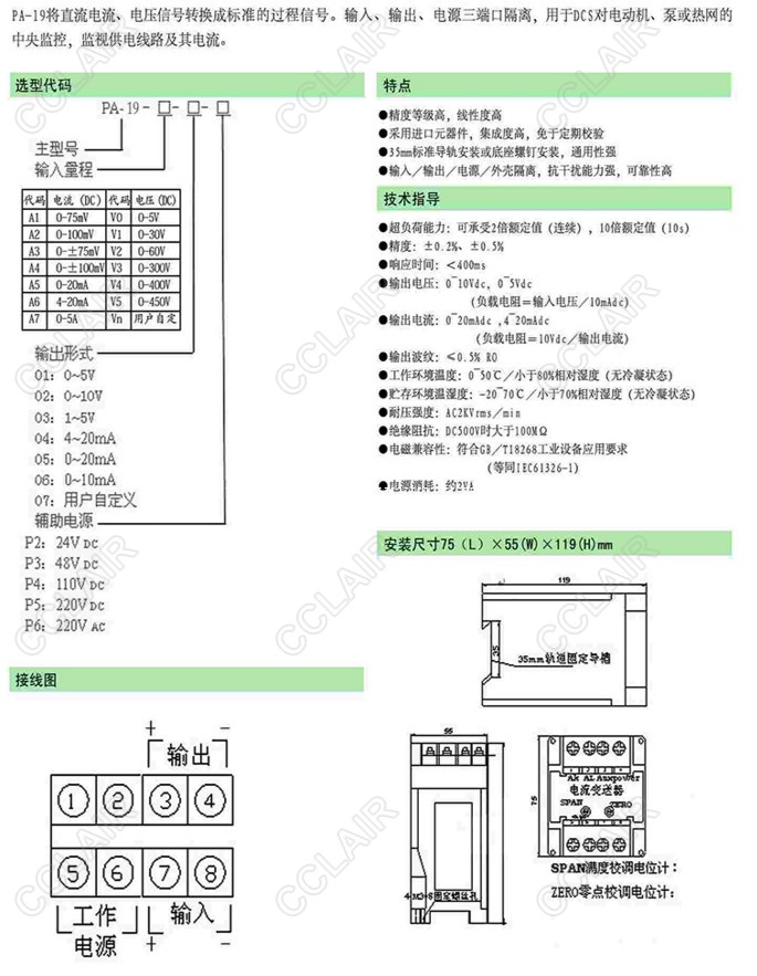 詳細(xì)信息 PA-19-A1,PA-19-A2,PA-19-A3,PA-19-A4,PA-19-A5,PA-19-A6,PA-19-A7,PA-19,直流電流、電壓變送器