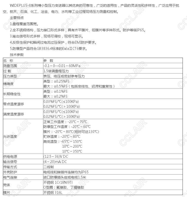 詳細信息 WIDEPLUS-8,WIDEPLUS-8AIS1G1F2A5GI7GJ,精小型壓力變送器