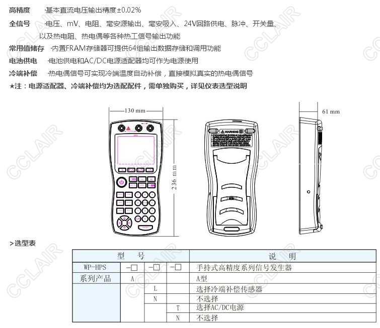 詳細(xì)信息 WP-HPS-A-L-T,WP-HPS-A-L-N,WP-HPS-A-N-T,WP-HPS-A-N-N,HPS手持式高精度信號發(fā)生器(信號通)