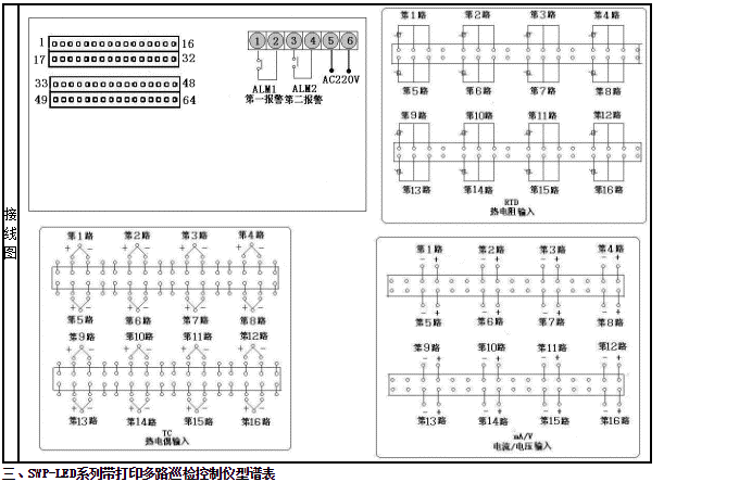 2、帶打印多路巡檢控制儀可選擇各輸入通道統(tǒng)一報(bào)警控制輸出或各輸入通道分別報(bào)警控制輸出。