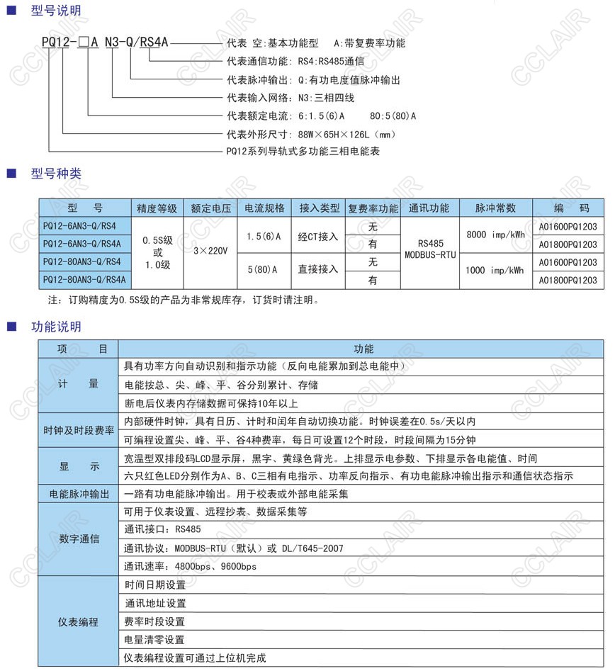 詳細信息 PQ12-6AN3-Q/RS4,PQ12-6AN3-Q/RS4A,PQ12-80AN3-Q/RS4,PQ12-80AN3-Q/RS4A,PQ12導軌安裝式三相電能表