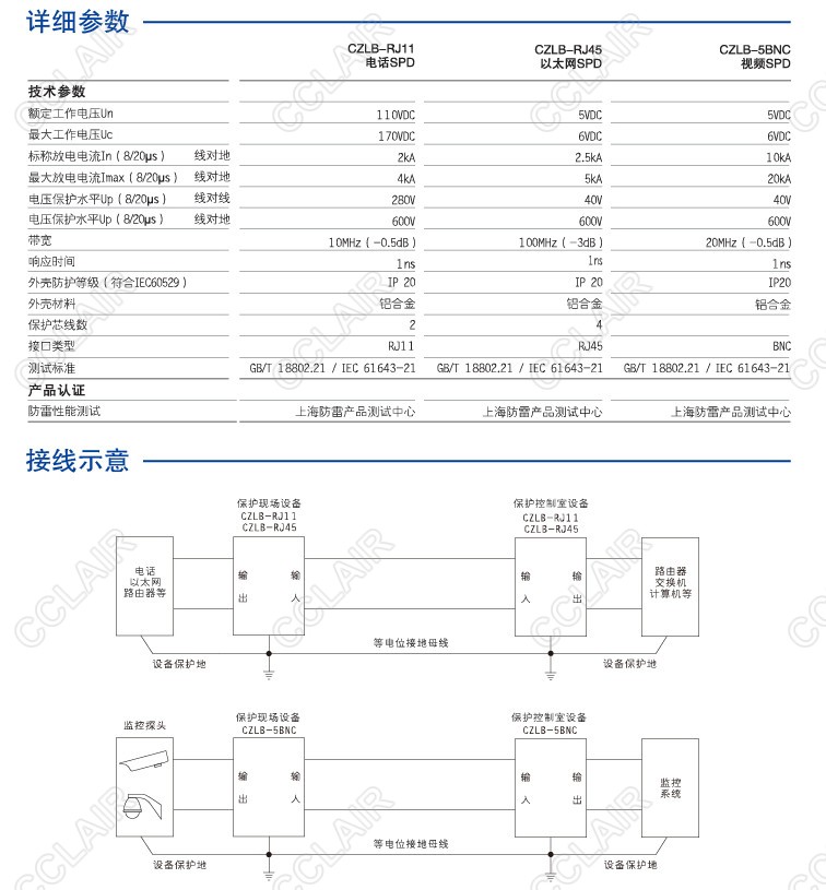 詳細信息 CZLB-RJ45 以太網(wǎng)SPD