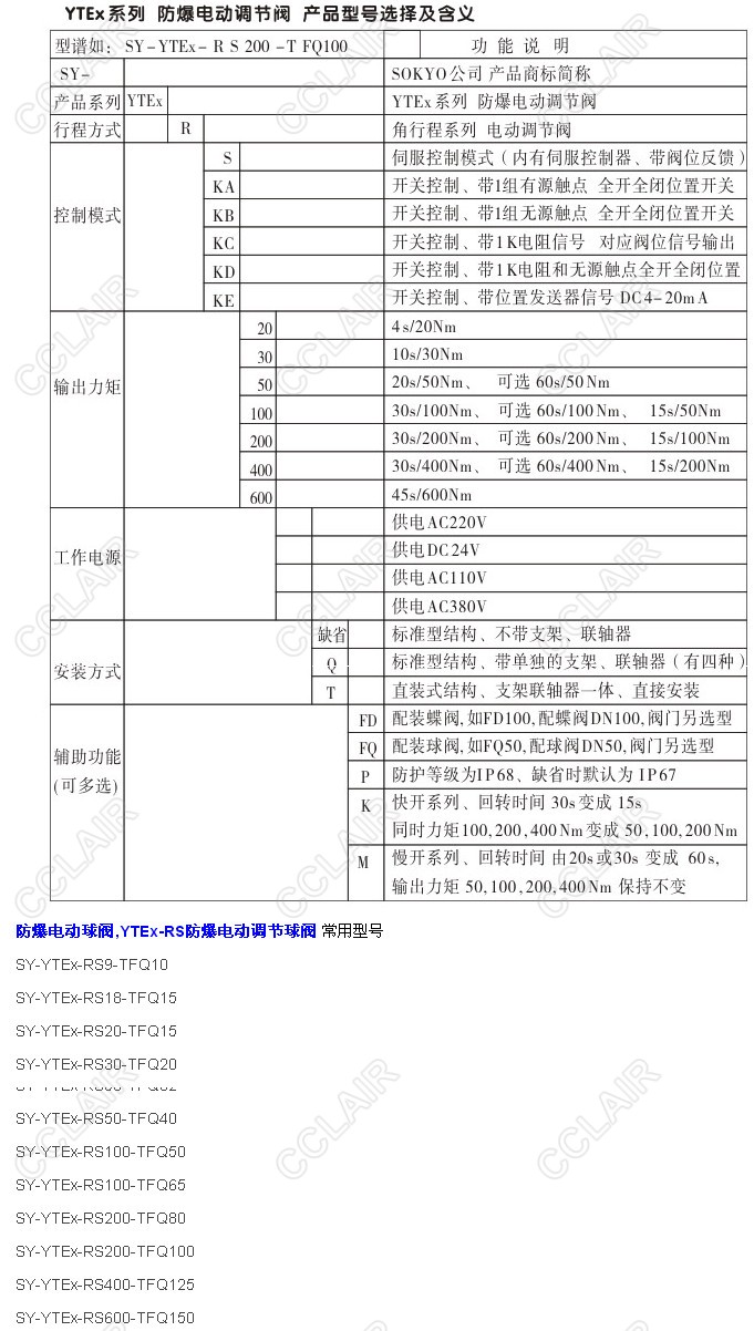 詳細信息 SY-YTEX-RS9-TFQ10,SY-YTEX-RS18-TFQ15,YTEX-RS防爆電動調(diào)節(jié)球閥