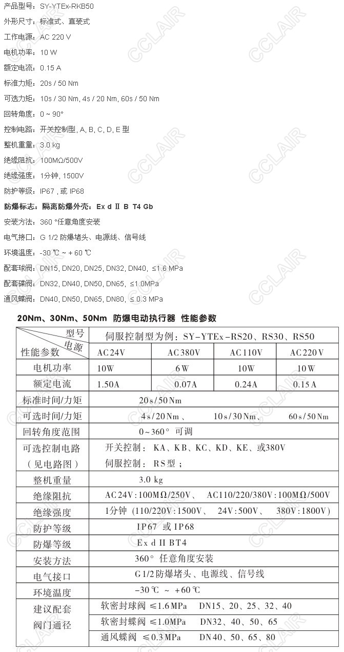 SY-YTEX-RKB50,SY-YTEX-RKB50-T,SY-YTEX-RKB50-Q,YTEX-RKB50防爆電動(dòng)執(zhí)行器