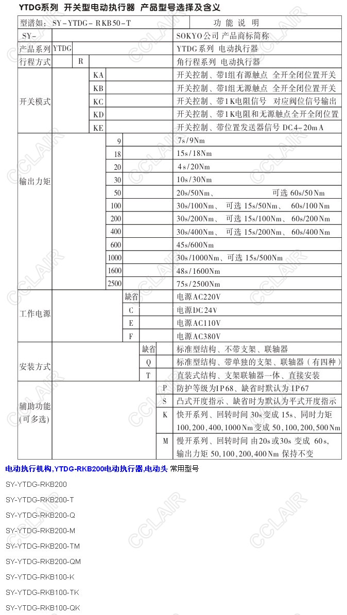 SY-YTDG-RKB200,SY-YTDG-RKB200-T,SY-YTDG-RKB200-Q,YTDG-RKB200電動(dòng)執(zhí)行器電動(dòng)頭
