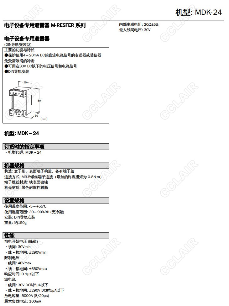 產(chǎn)品: 瀏覽次數(shù):892MDK-24,4-20mA直流、脈沖信號(hào)用 低位安裝型避雷器