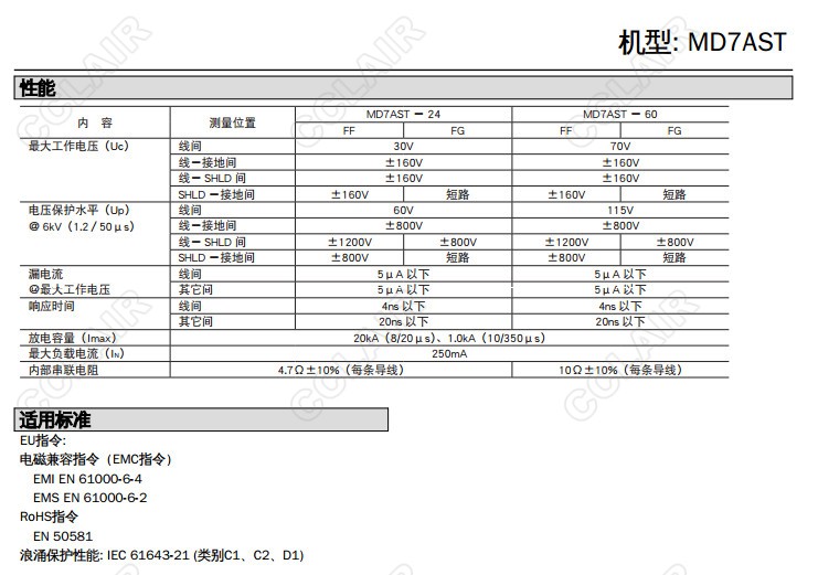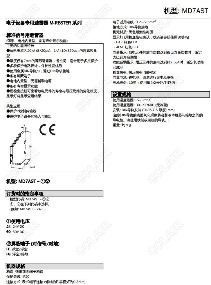 詳細信息 MD7AST,MD7AST-24FF,MD7AST-24FG,MD7AST-60FF,MD7AST-60FG,2線制信號用避雷
