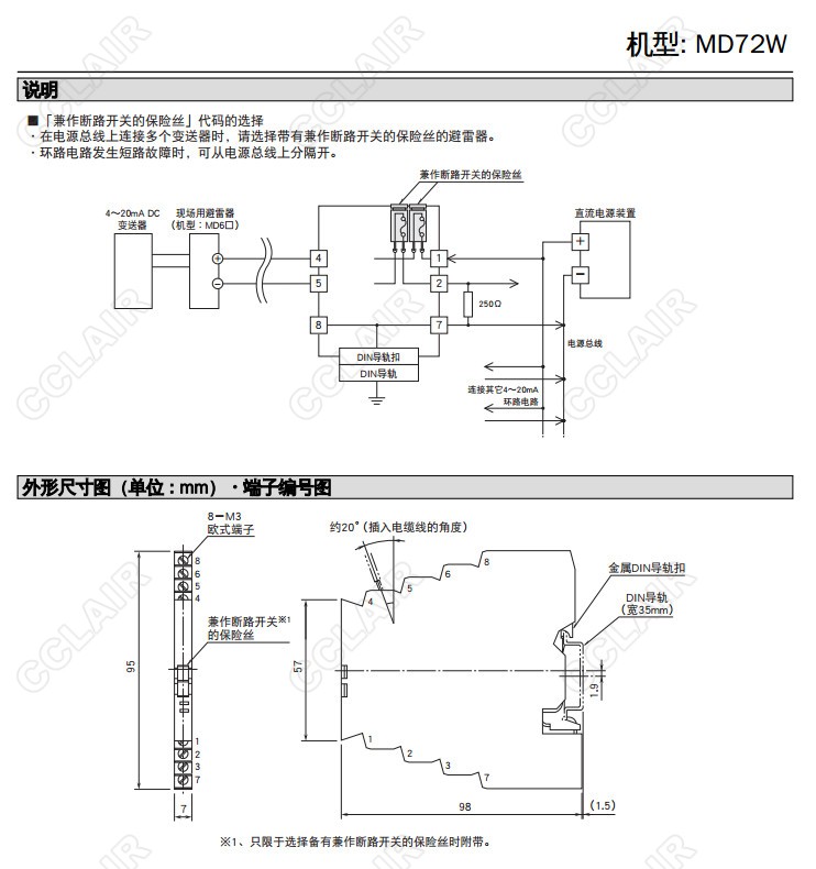 詳細(xì)信息 MD72W,MD72W-5500,MD72W-07,MD72W-16,MD72W-32,MD72W-55,2線制信號(hào)用避雷