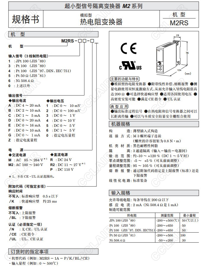 詳細信息 M2RS,M2RS-1A-P/K/BL/CE,M2RS-1,M2RS-3,M2RS-4,M2RS-5,M2RS-6,M2RS-0,熱電阻變換器(模擬型)