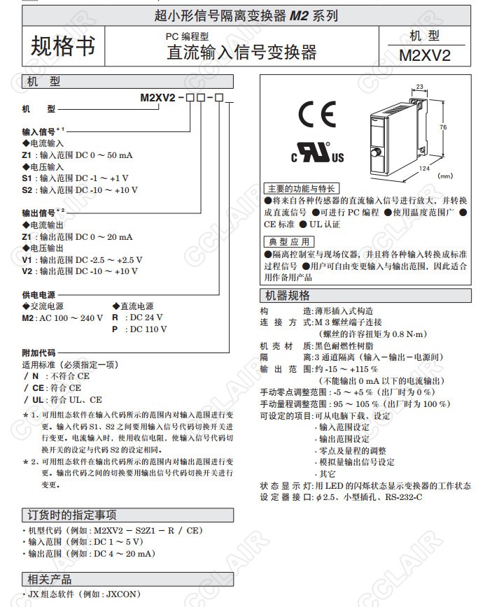 詳細(xì)信息 M2XV2,M2XV2-Z1 Z1-M2 /N,M2XV2-S1 Z1-M2 /N,M2XV2-S2 Z1-M2 /N,直流輸入信號變換器(PC編程型)M2XV2-Z1 V1-M2 /N,M2XV2-S1 V1-M2 /N,M2XV2-S2 V1-M2 /N,