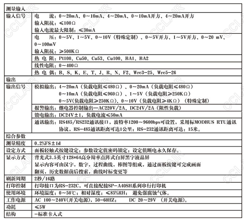 儀表可選擇8路或16路萬能信號輸入,各輸入通道信號互不干擾,報警方式可選擇“統(tǒng)一報警輸出”、“16限 分別報警輸出”,變送輸出方式可以選擇“統(tǒng)一變送輸出”、“8路分別變送輸出”、并帶有RS485/232通訊等 輸出功能,是一款功能齊全的漢顯儀表。