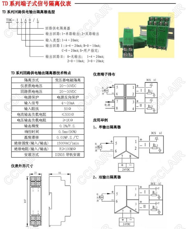 詳細(xì)信息 TDG-11A0/L,TDG-11A1/L,TDG-11A2/L,TDG-11A3/L,回路供電隔離器