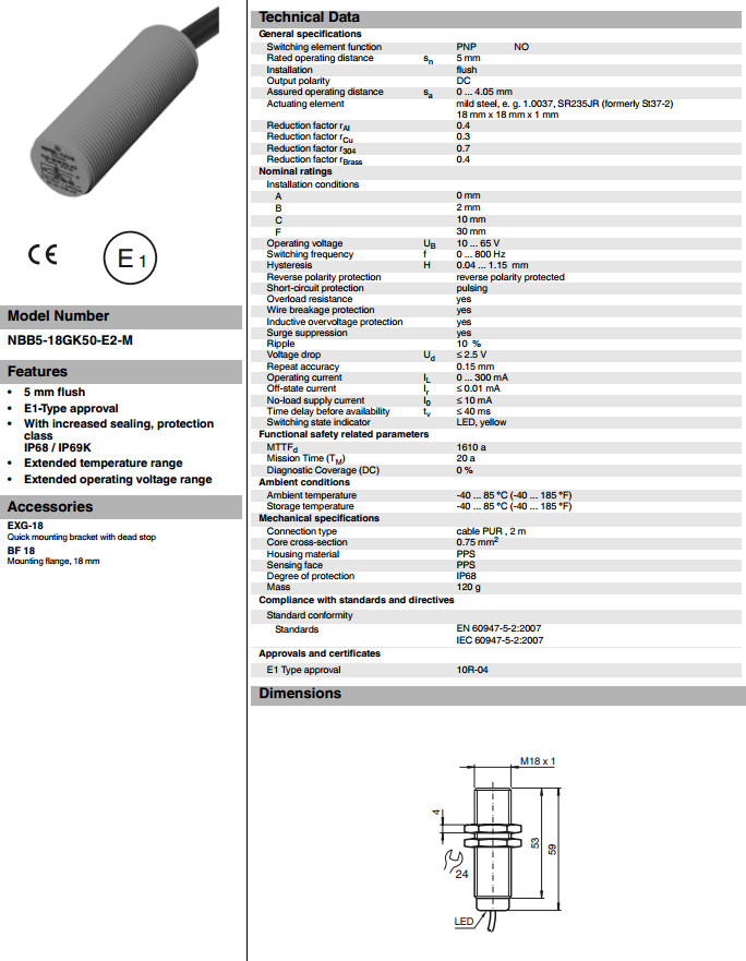 NBB5-18GK50-E2-M電感式接近開關(guān)