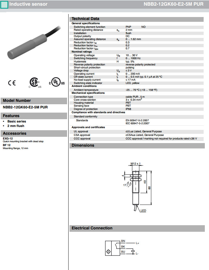 NBB2-12GK60-E2-5M PUR感應(yīng)式傳感器