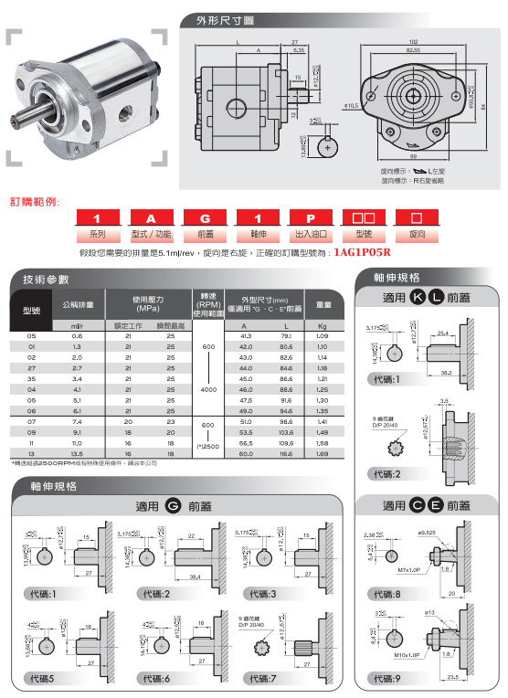 1AG1P05L,1AG1P01L,1AG1P02L,1AG1P27L,HONOR鋁合金齒輪泵