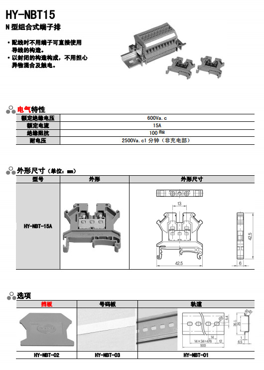 產(chǎn)品: 瀏覽次數(shù):660HY-NBT-15A,N型組合式端子排