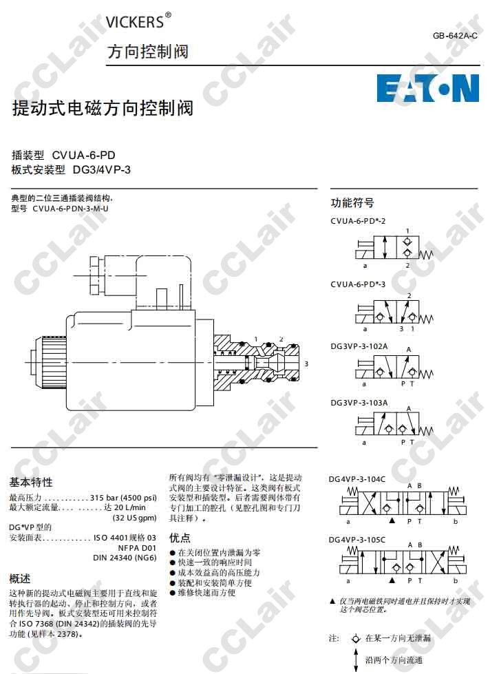 DG3VP-3,DG4VP-3,CVUA-6,DG3VP-3-102A-VM-U-B-10,CVUA-6-PDW-3-M-U-H-10,威格士-Vickers,提動式電磁方向控制閥