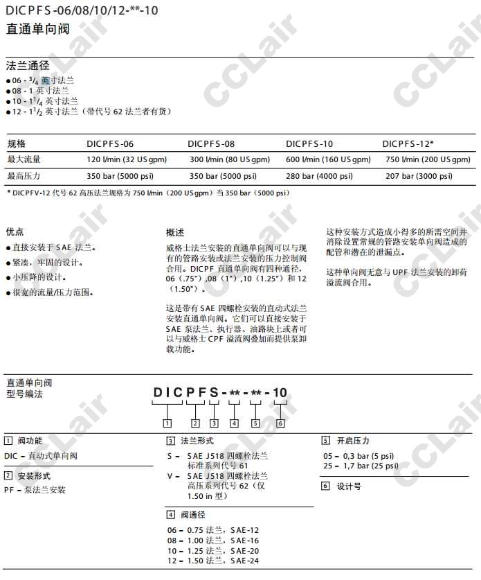 DICPFS-06,DICPFS-08,DICPFS-10,DICPFS-12,DICPFS-06-05-10,威格士-Vickers,直通單向閥