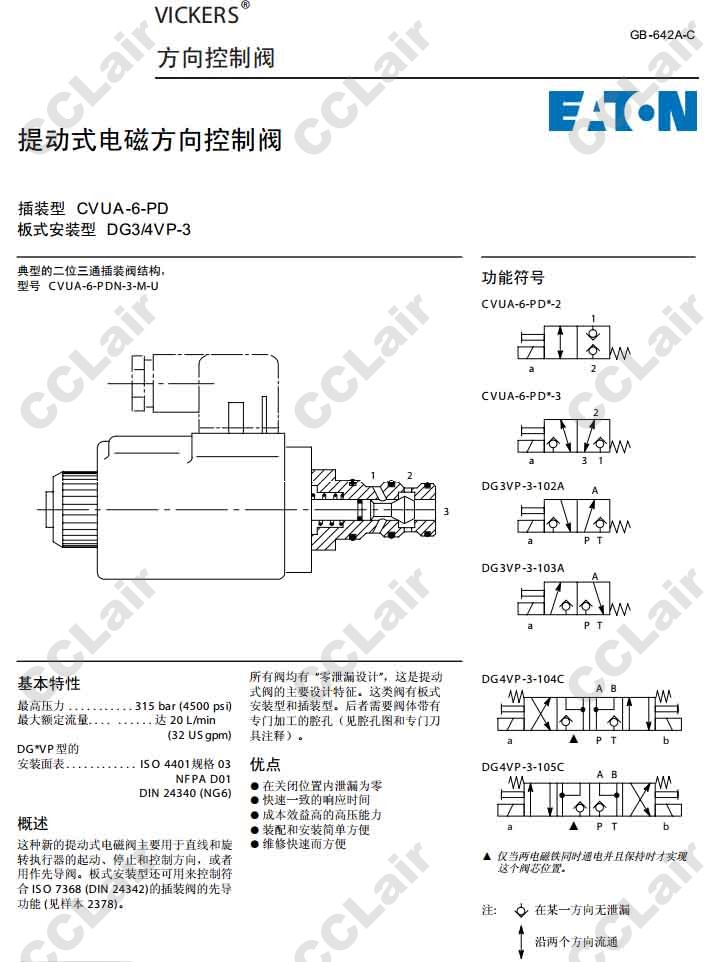 CVUA-6,CVUA-6-PDN-3-M-U-B-10,CVUA-6-PDN-3-M-U-D-10,CVUA-6-PDN-3-M-U-G-10,威格士-VICKERS,電磁方向控制閥