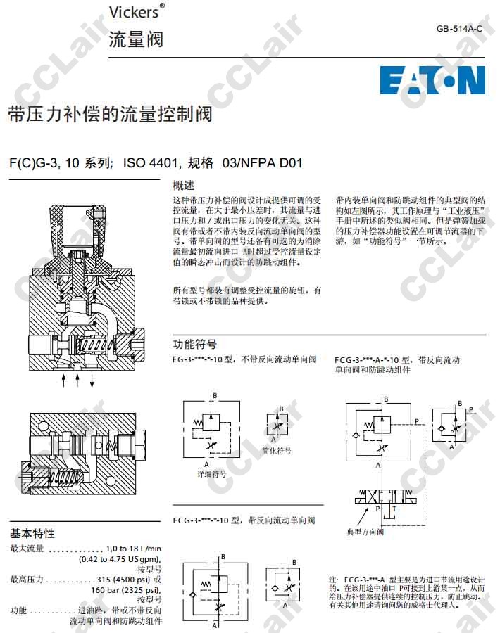 FG-3,FCG-3,FG-3-10-H-10,FG-3-16-H-10,FG-3-32-H-10,FG-3-63-H-10,威格士-VICKERS,流量控制閥