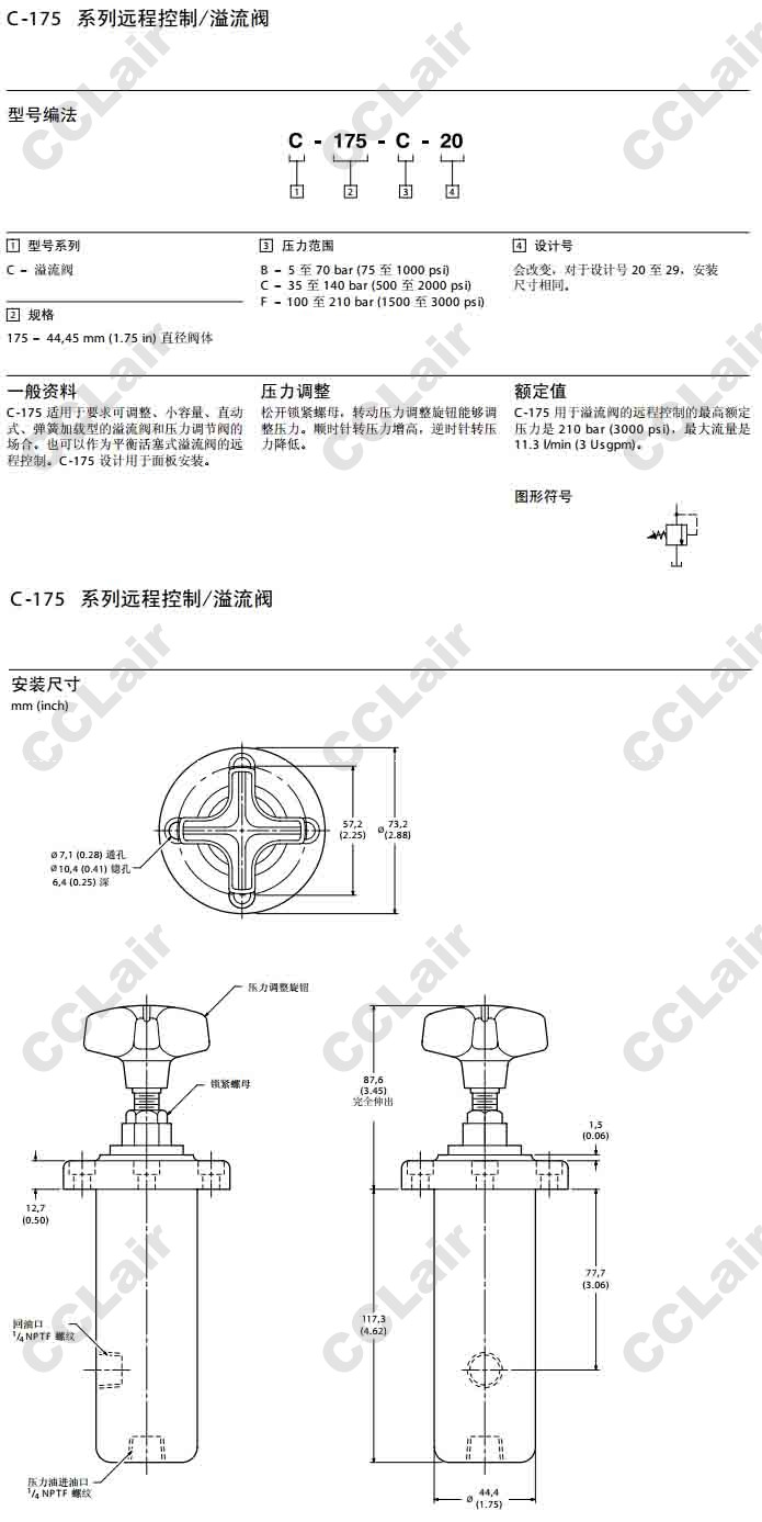 C-175-B-20,C-175-B-20,C-175-C-20,C-175-F-20,溢流閥,威格士-Vickers