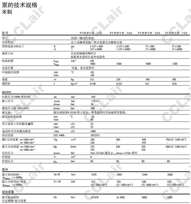 PFWS-250,PFWS-360,PFWS-500,PFWS-750,定量和變量開(kāi)式回路柱塞泵
