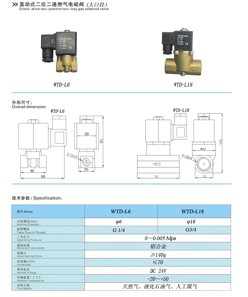 WTD-L6,WTD-L18,直動式大口徑二位二通燃?xì)怆姶砰y