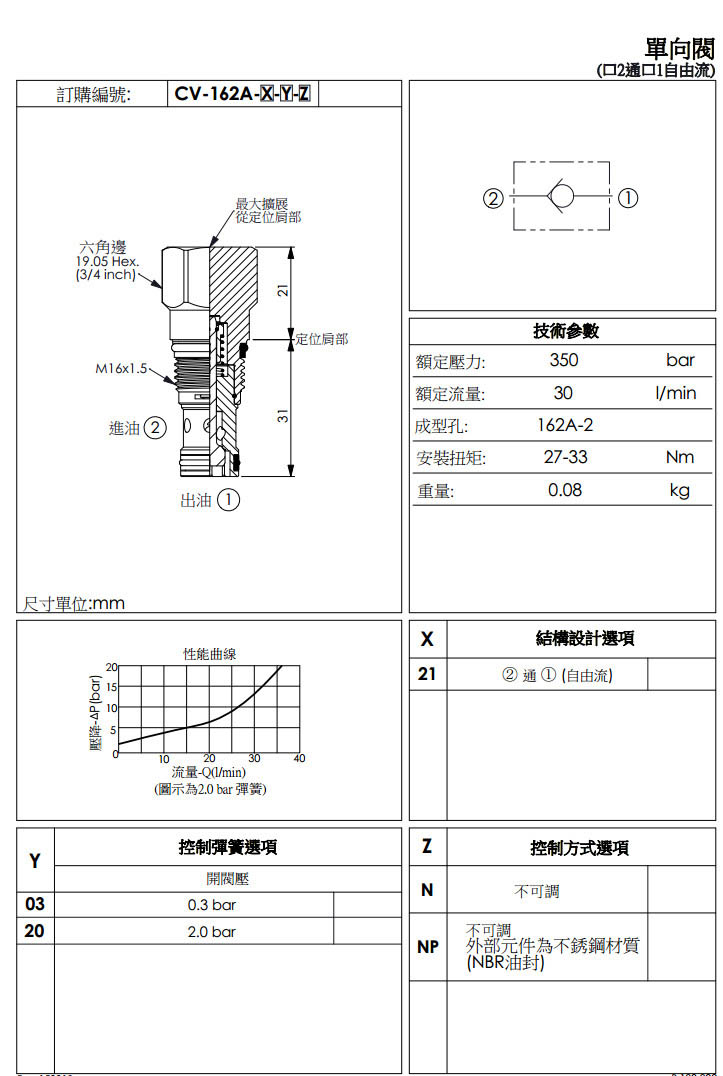 詳細信息 CV-162A-20-03-N,CV-162A-20-20-N,CV-162A-20-50-N,CV-162A-20-03-NP,winner單向閥