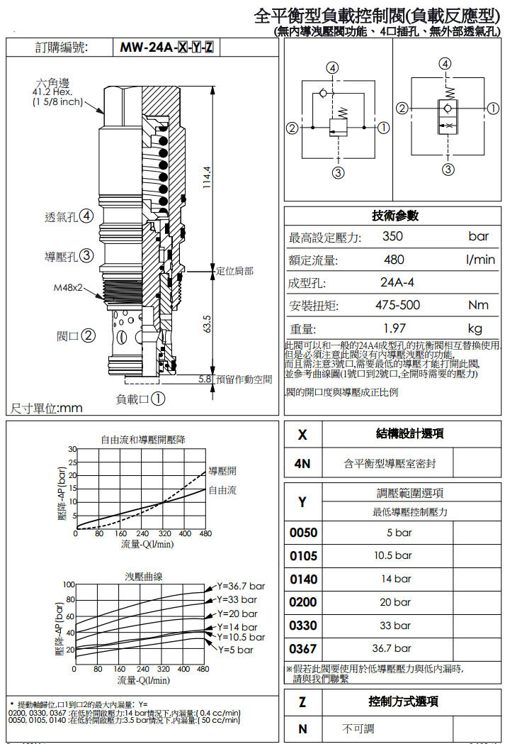 詳細(xì)信息 MW-24A-3N-0050-N,MW-24A-3N-0105-N,MW-24A-3N-0140-N,MW-24A-3N-0200-N,winner全平衡型負(fù)載控制閥