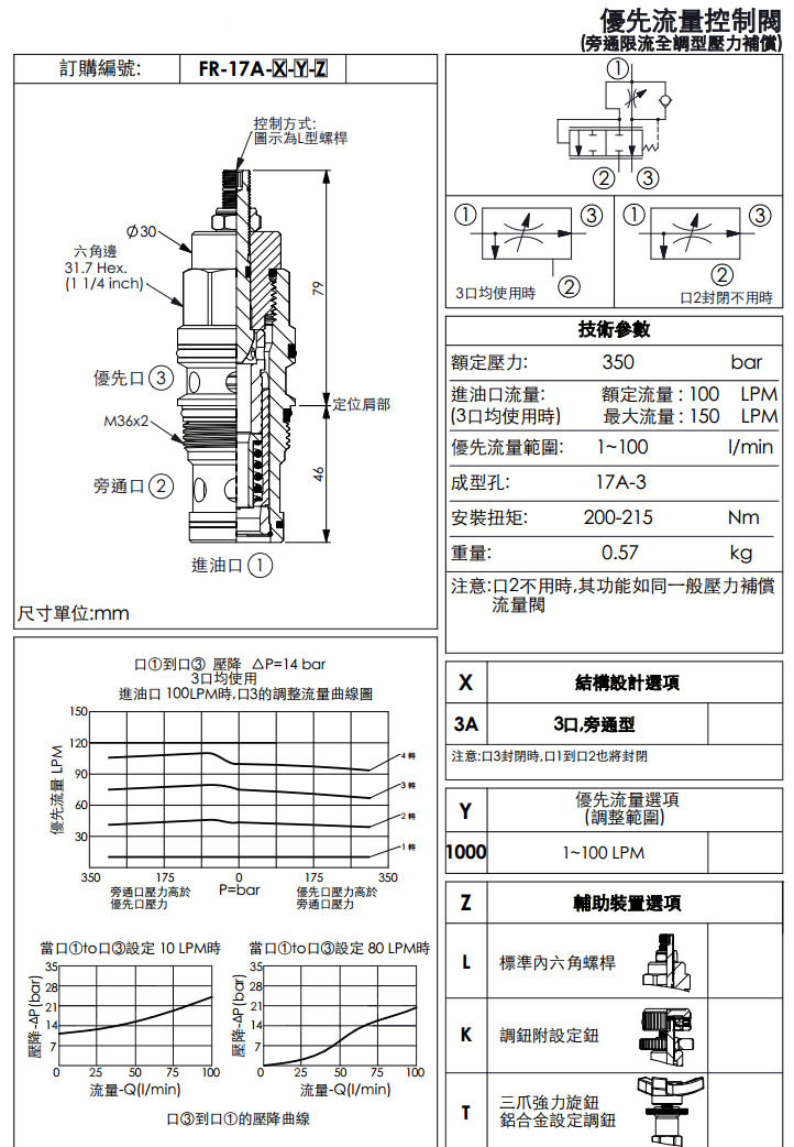 詳細信息 FR-17A-3A-1000-L,FR-17A-3A-1000-K,FR-17A-3A-1000-T,winner優(yōu)先流量控制閥