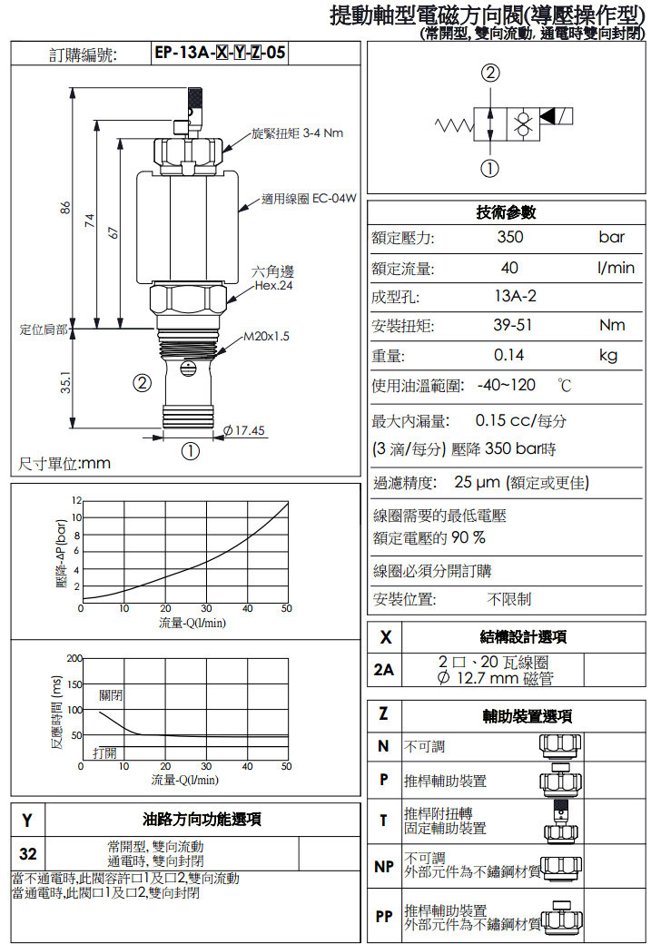 型號: EP-13A-2A-32-N-05,EP-13A-2A-32-P-05,EP-13A-2A-32-T-05,winner提動軸型電磁方向閥