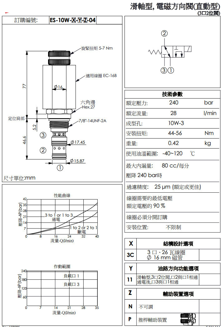 詳細信息 ES-10W-3C-11-N-04,ES-10W-3C-11-P-04,ES-10W-3C-14-N-04,ES-10W-3C-15-N-04,winner滑軸型電磁方向閥
