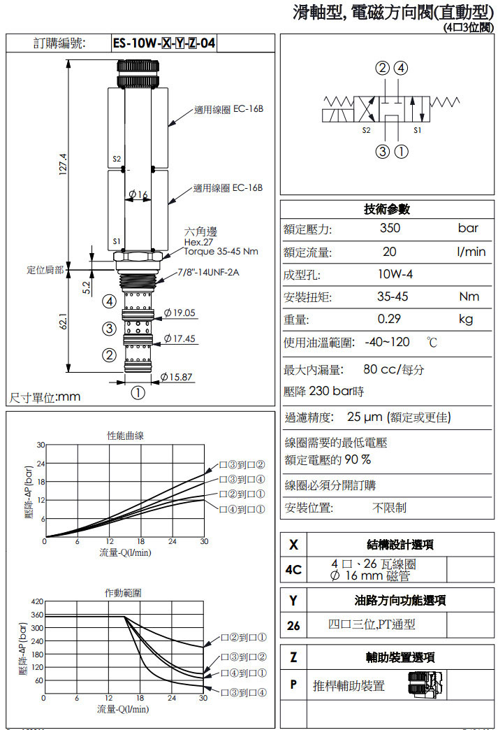 ES-10W-4C-22-P-04,ES-10W-4C-26-P-04,winner滑軸型電磁方向閥