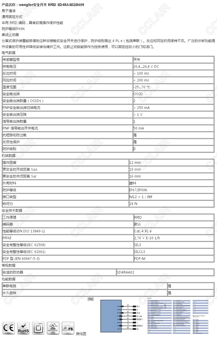 詳細(xì)信息 SD4RAS02SN89,wenglor安全開關(guān)RFID