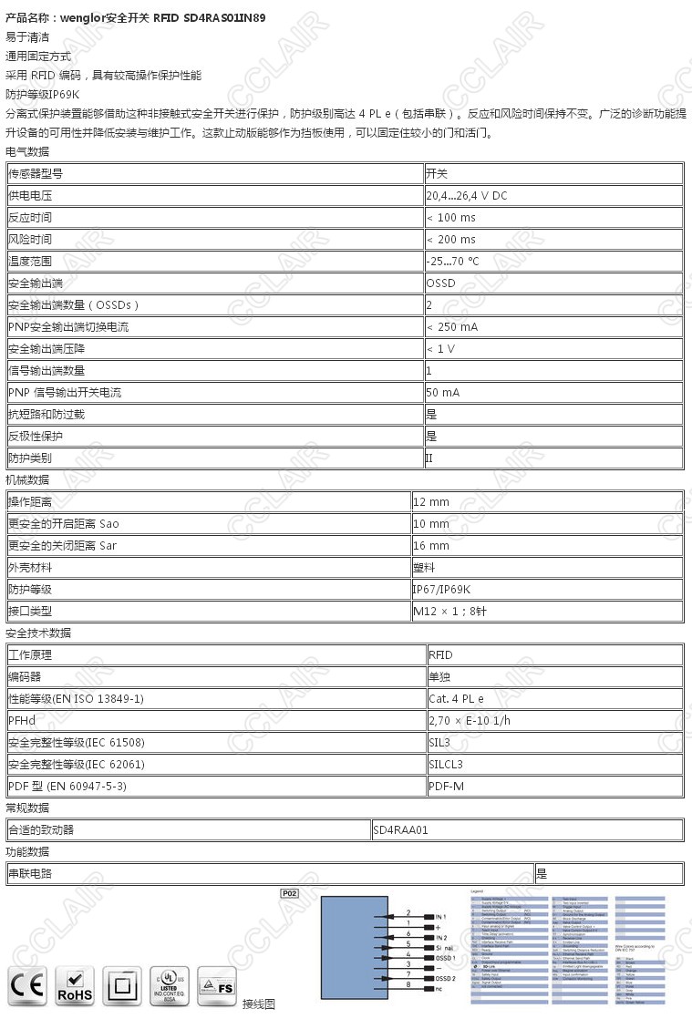 詳細(xì)信息 SD4RAS01IN89,wenglor安全開關(guān)RFID