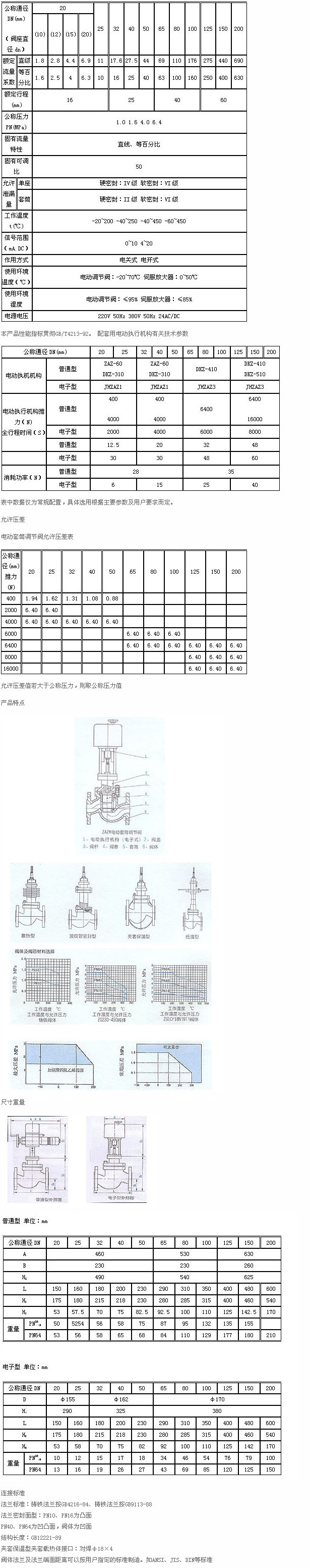 本系列產(chǎn)品公稱(chēng)通徑由20至200mm,公稱(chēng)壓力有1.0、1.6、4.0、6.4MPa,使用溫度范圍由-40℃~450℃,接受信號(hào)為0~10mA.DC或4~20mA.DC。其中電動(dòng)單座調(diào)節(jié)閥適用于壓差較小,介質(zhì)粘度較大或稍有顆粒雜質(zhì)場(chǎng)合。電動(dòng)套筒調(diào)節(jié)閥適用于壓差較大場(chǎng)合。按閥內(nèi)件密封部分材質(zhì)分又有金屬-金屬和非金屬-金屬密封兩種,后者閥關(guān)閉時(shí)泄漏量可達(dá)VI級(jí)(零泄漏)標(biāo)準(zhǔn)。按填料不同可分為一般填料密封和波紋管密封兩種,前者用一般場(chǎng)合,而后者用至不允許外漏的重要場(chǎng)合。流量特性為線性或等百分比。配用不同的執(zhí)行機(jī)構(gòu)可分為普通型和電子型兩種。多種多樣的品種規(guī)模可供選擇。