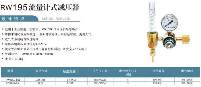 詳細信息 RW195C-25L,RW195A-25L,流量計減壓器