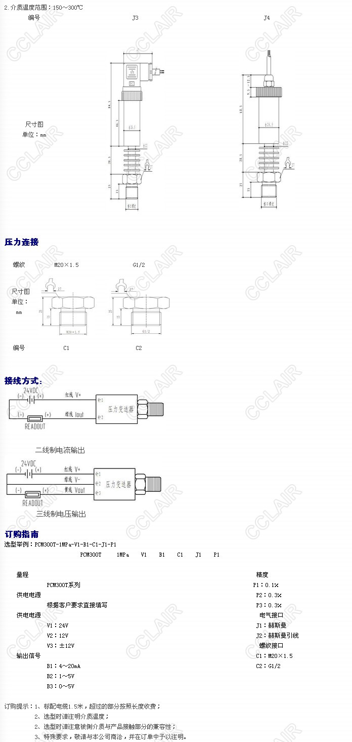 PCM300T-1MPa-V1-B1-C1,PCM300T-1MPa-V2-B1-C1,PCM300T-1MPa-V3-B1-C1,PCM300T高溫型壓力變送器
