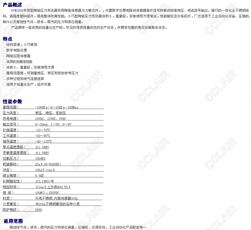 PCM320D-1MPa-V1-B1-C1,PCM320D-1MPa-V2-B1-C1,PCM320D-1MPa-V1-B2-C1,PCM320D專用型陶瓷壓力變送器