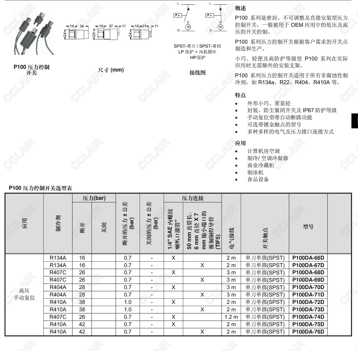 詳細(xì)信息 P100AP-300D,P100AP-301D,P100AP-302D,P100AP-303D,P100AP-304D,P100,直接安裝壓力控制開關(guān)